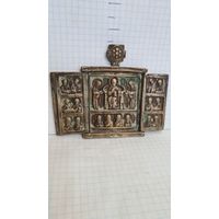СТАРИННАЯ ИКОНА 19 века " ПРАЗДНИКИ ". Размеры:300/385/20 мм..Живопись