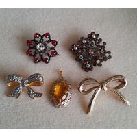 Брошь Бант с кристаллом цитринового цвета. Чехословакия
