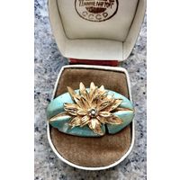 Брошь Бант с кристаллом цитринового цвета. Чехословакия