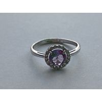 Красивое колечко с нежно-розовыми переливающимися вставками.