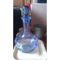 Старинный графин марганцевое стекло тончайшее нежное стекло гравировка 50-е гг