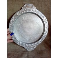 Поднос фарфоровый для утреннего чая или кофе в доме молодожёнов. Расписан цветочками.