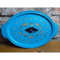 Большой, тяжёлый, расписной поднос. Царизм, ручная роспись.
