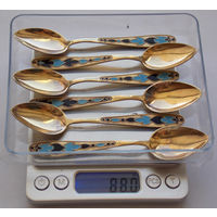 Пара чайных ложек, серебро 875 пробы, эмаль, позолота. СССР, Ленинград, 1969 г.