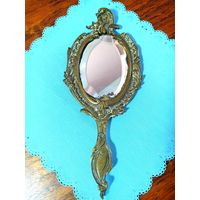 Зеркало латунное, ручное, очень старинное и антикварное, наменянное 19 вв. Изящное и дамское, в точности, как у настоящих королев !!! Достойная и стоящая покупка.