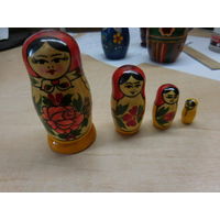 Счётный материал СССР коробка и некомплект набора - деревянные ёлочки, грибочки, матрёшки