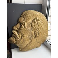 Самодельный, гипсовый барельеф В. И. Ленина , на деревянном основании, диаметр 20 см.