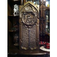 Панно-барельеф "Мадонна с младенцем и Иоанн Креститель". Резьба по дереву 38х28х4,5 см.