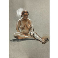 Данелия П.А "Ожидание",1952г. Картон, масло. Размер 48х32,5 см.