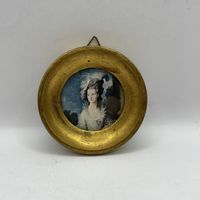 Старинная Портретная миниатюра. Масло на холсте. Рамка дерево , бронза.